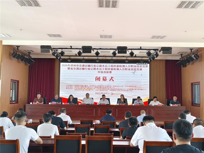 8月21日上午,2025年濱州市交通運(yùn)輸行業(yè)公路水運(yùn)工程質(zhì)量檢測人員職業(yè)技能競賽暨省交通運(yùn)輸行業(yè)公路水運(yùn)工程質(zhì)量檢測人員職業(yè)技能競賽市級(jí)選拔賽閉幕式在公司七樓會(huì)議室舉辦。市人力資源和社會(huì)保障局黨組副書記、市公共就業(yè)和人才服務(wù)中心主任顏波,共青團(tuán)濱州市委副書記丁寶冬,市交通運(yùn)輸局黨組成員、副局長曹斌,市交通運(yùn)輸局黨組成員、四級(jí)調(diào)研員鐘軍,公司黨委副書記、總經(jīng)理、董事劉漢興及市交通運(yùn)輸局、市總工會(huì)有關(guān)部門及公司權(quán)屬工程公司、監(jiān)理公司有關(guān)負(fù)責(zé)同志參加活動(dòng)。